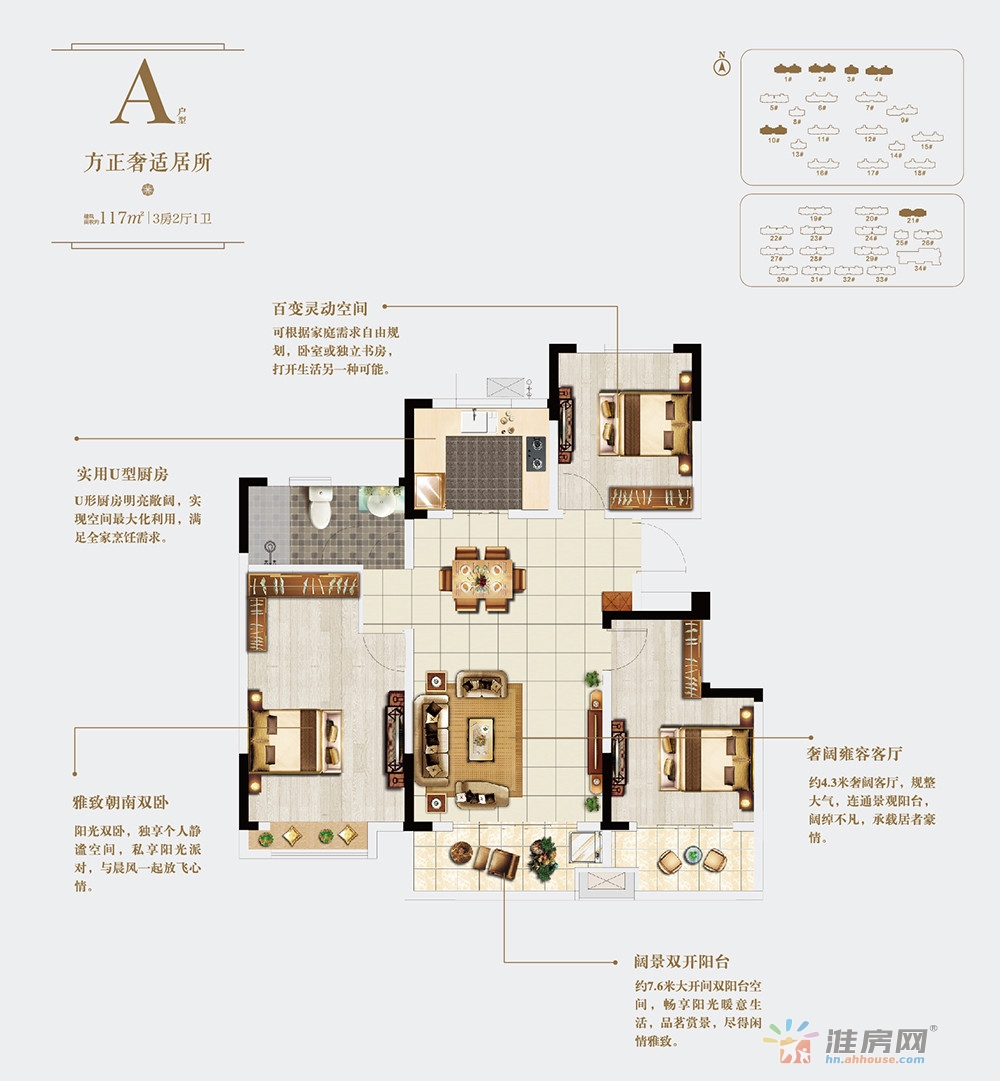 3室2厅1卫 117㎡